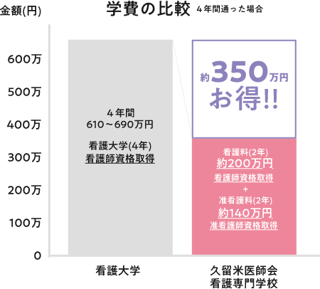 少ない学費で准看護師資格を取得できるコースを提供しています。高い合格率を誇り、実践的なスキルを身に付けながら、身体的・精神的な支援が必要な方々へ寄り添う看護師を目指せます。主に久留米市内での実習であり、卒業後も豊富な求人情報でキャリアをしっかりとサポートします。